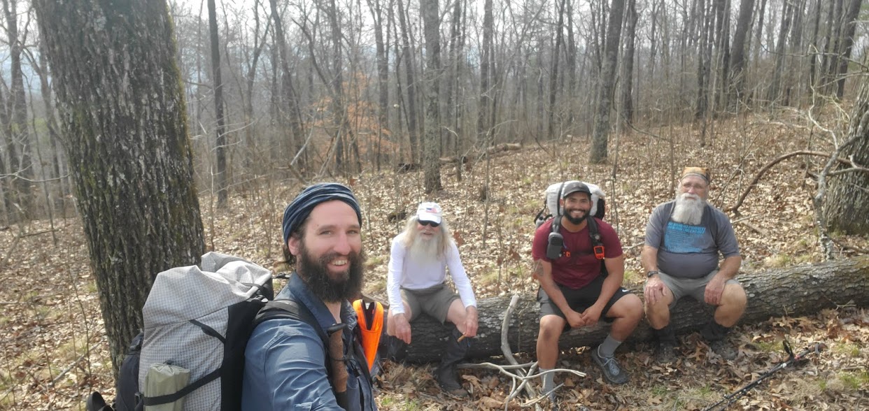 onto to the ridge beyond Highpoint. At the campsite near the old firetower we catch up with Ryan and Little John. They’re in the process of breaking camp as we pass and they soon come along to join us–and hike with us the remainder of the day.