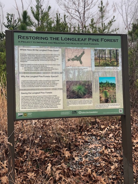 restoration/reforestation. We pause to read about “Restoring the Longleaf Pine Forest.” Very informative! Hopefully, you’ll be able to zoom in enough to read the longleaf story.