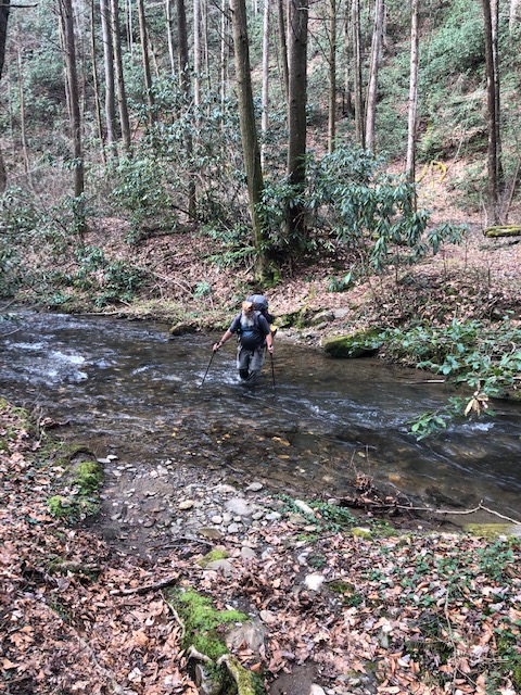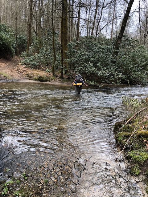 Pinhoti–Buddy Cove Gap, which stands at 3,146 feet. Great views out across the Blue Ridge Mountains of Georgia! And many more water crossings today. Some running deep and swift, the last being South Fork, Jack’s River.